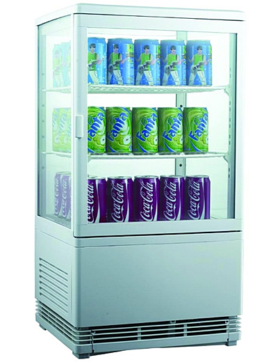 Панорамный холодильный шкаф GASTRORAG RT-58W объемом 58 л предназначен для охлаждения и демонстрации продуктов и напитков. Данная модель поддерживает температуру в диапазоне 0...+12оС и выполнена из прочной окрашенной стали белого цвета. Работа устройства основана на компрессорном принципе охлаждения. Шкаф оснащен стеклянной дверцей и двумя полками-решетками, а также подсветкой.